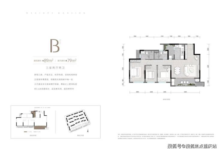 建面约79平套三