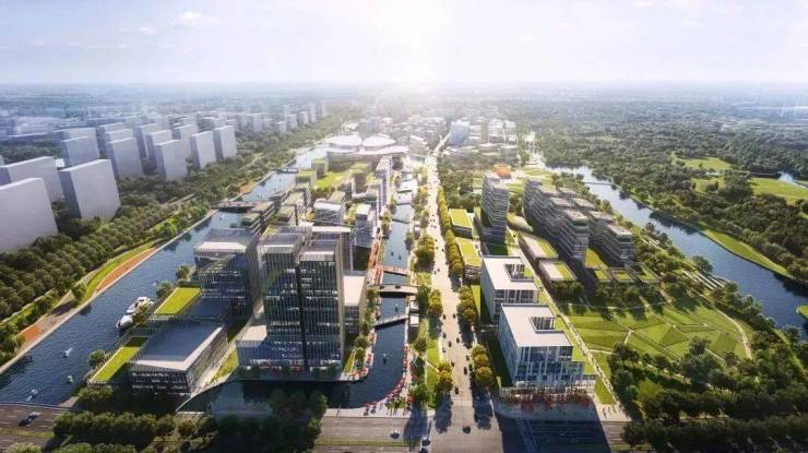 “一环、两轴、多节点”景观体系,中央水景轴贯穿南北,乔木林荫夹道,四季有景。