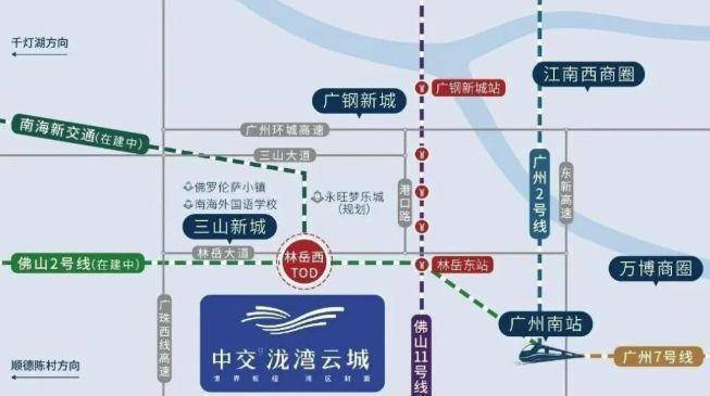 中交泷湾云城,由央企中交城投实力打造,是一座建面约 70 万平方米的 TOD 生活大城。项目位于佛山市南海区桂城街道林岳大道边,佛山地铁 2 号线林岳西站上盖,地处广佛融城前沿的三龙湾片区,占据广佛科创中轴规划发展先机。