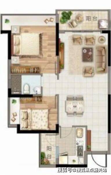 厨房紧邻餐厅,操作便捷,“U” 型设计让操作台面更加宽敞,橱柜收纳空间丰富,方便存放各类厨房用品。主卧空间宽敞,配备衣柜,能满足衣物收纳需求,还带有飘窗,增加了采光与空间感,提升了居住舒适度。次卧面积适中,可根据需求布置成儿童房或书房,满足不同生活场景。卫生间干湿分离,保证了日常使用的便利性与卫生。整体户型动静分区合理,休息区与活动区互不干扰,是追求舒适居住体验的小家庭的理想选择。