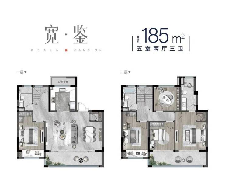 除此之外,熙和樾庭打破传统住宅一“层”不变的格局,还打造了建面约185㎡宽景叠墅。上叠看书休憩,安静独处;下叠招待好友,品酒谈天,私属生活互不干扰。动静分离的空间全方位保障居者的私密性与舒适感。