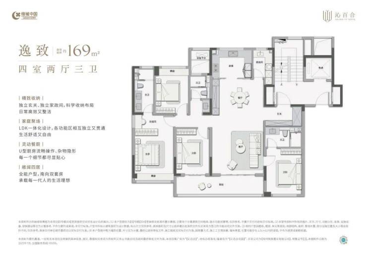 169㎡ 四房两厅两卫:空间尺度更为阔绰,居住体验升级。