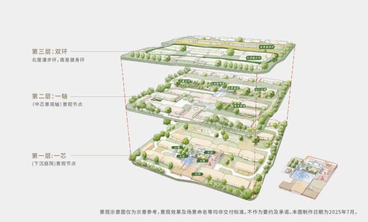 百合园林,回家即度假:社区园林以“百合”为灵感,打造了“一芯一轴双环”的景观体系。有下沉式的庭院会客厅,有全龄活动的活力轴,还有环社区的漫步道和健身环,每一步都是风景,满足全家人的休闲需求。