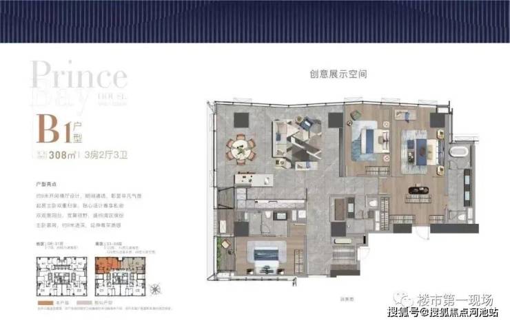 大平面大尺度定位,层高约3.6米,横厅设计确保最大化观景面,全户型纵享环幕视野。项目打造主力建面约215-415㎡纯粹品质公寓共191席,顶层为建面约1270㎡公寓产品。