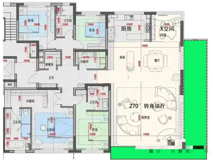 有老人带娃选169平四室,得房率120%左右,客厅更宽敞;
