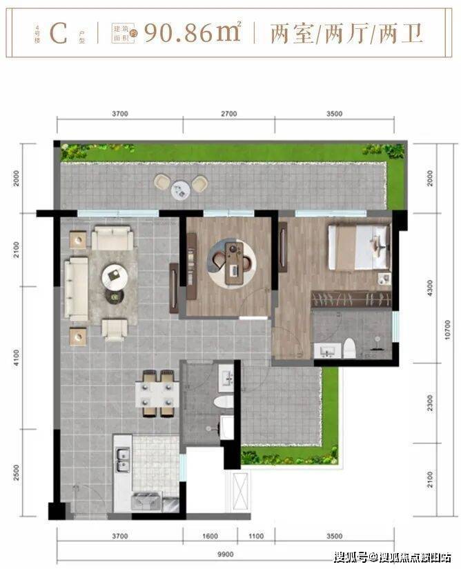 轩朗舒适、高使用率全明户型,约10米面宽的景观阳台,横跨双卧一厅,开阔的起居空间,视野通达,纵享无边美景。私享多功能阳台,自由变换,拥有更多空间惊喜。