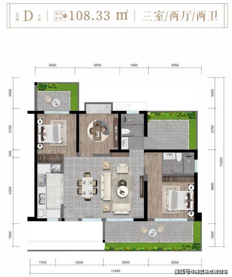 全景户型,大面宽全景观空间布局,餐客厅轩朗开阔,三阳台臻稀户型,艺术空间组合序列,人性化精析设计,纵享更多起居空间。