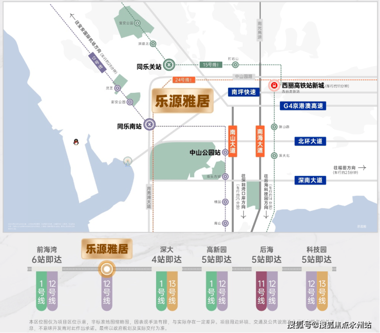 项目位于南山区同乐片区,紧邻南山科技园,距离地铁12号线同乐南站约800米,是“三湾七总部”黄金通勤圈的重要节点。项目所处区域被规划为南山区居住配套服务片区,虽属南山北部,但通过“站-产-城”融合发展模式,未来将与西丽湖国际科教城、留仙洞总部基地形成联动。乐源雅居售楼中心24小时置业电话:400-992-0669(官方直销,无分机号)