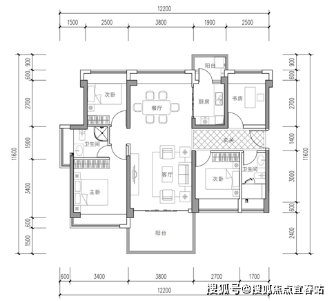 104-112㎡4房2厅2卫(以2A栋01户型112㎡为例)