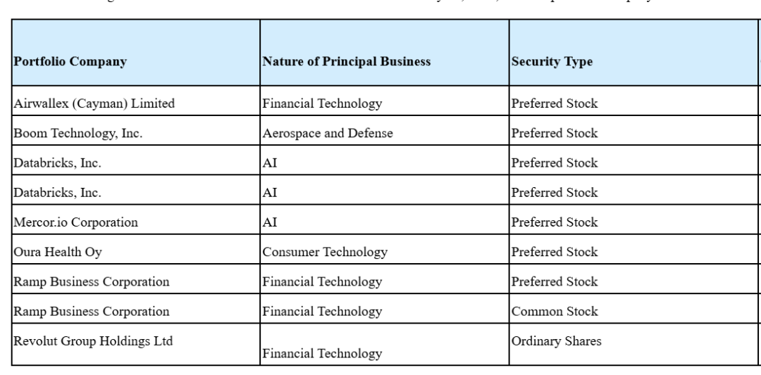 公告称,截至2026年1月31日,RVI的底层资产已经锁定7家企业,包括Databricks、Revolut、Mercor、Airwallex、Oura、Ramp和Boom Supersonic。此外,RVI已签署协议在IPO后购入Stripe股份,预计交割后将加入持仓。