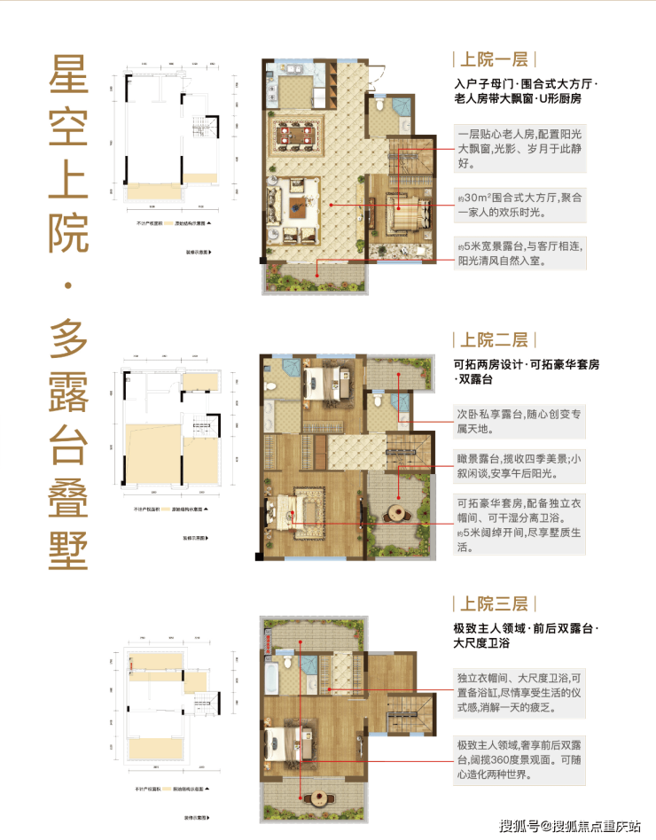 赠送露台50平左右,加挑空、飘窗阳台、空中花园赠送面积共计120平左右,层层有露台,电梯达车库。