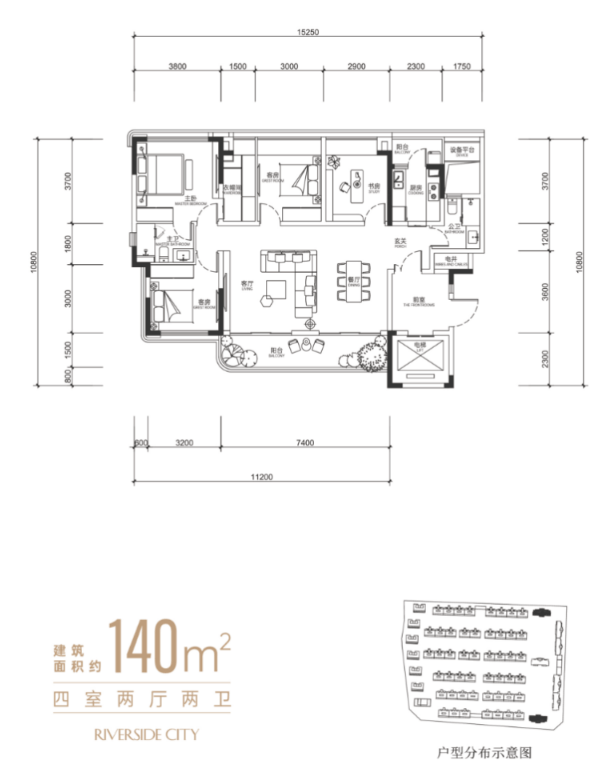 此系列平层产品定位为城市精英的品质进阶之选。户型设计强调空间的通透感与现代感,通过大面宽落地窗最大化引入江景与城市风光。129-159平方米的尺度兼顾了功能性与舒适度,适合追求核心地段、优越景观与高效生活的精英客群。
