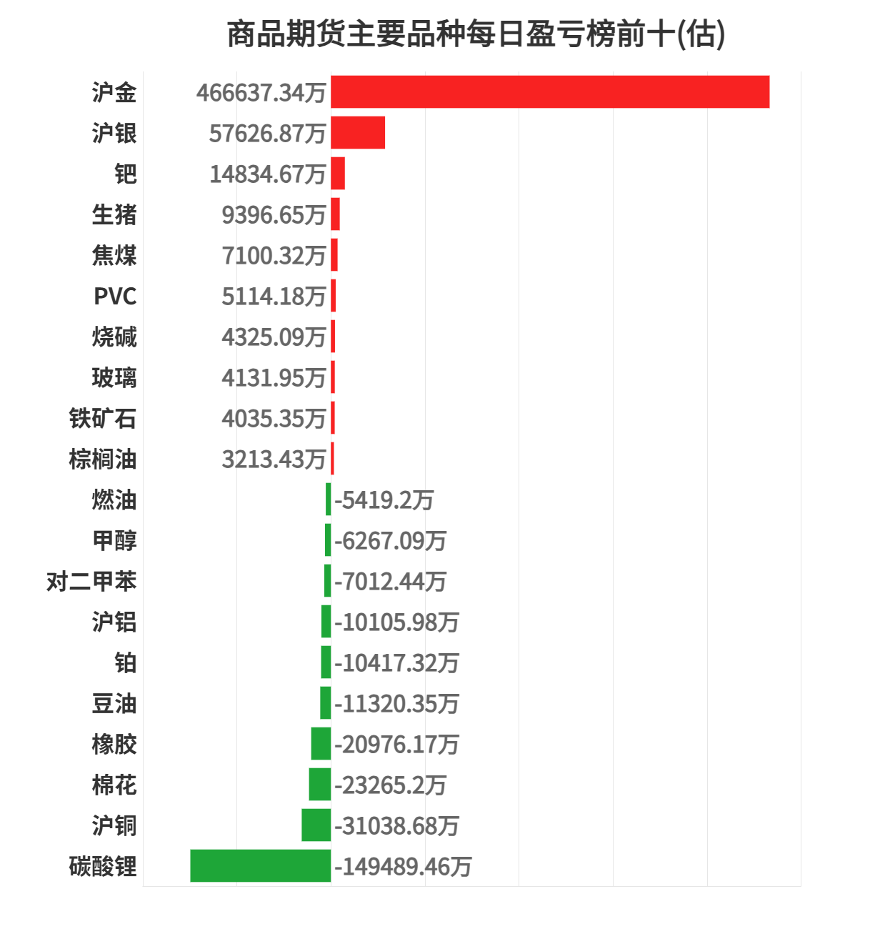 今日商品期货上榜机构席位中沪金盈利第一,为466637.34万元。