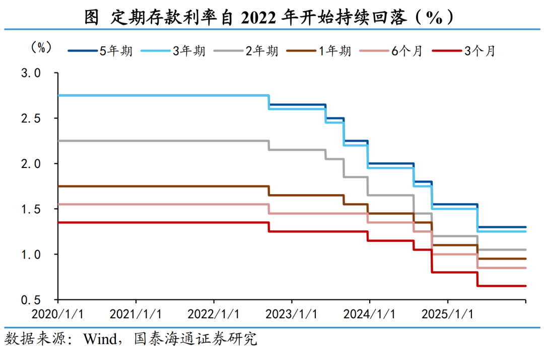 但需要强调的是,2025年本身已在持续消化高强度的存款重定价压力,2026年的变化更像是在这一高位基础上的延续,而不是突发的。在缺乏微观证据支撑的前提下,不宜对流出比例做激进的假设。而且2025年实际的定期存款续作情况与资金流向,已经可以观察后续边际变化提供了可参照的基准。