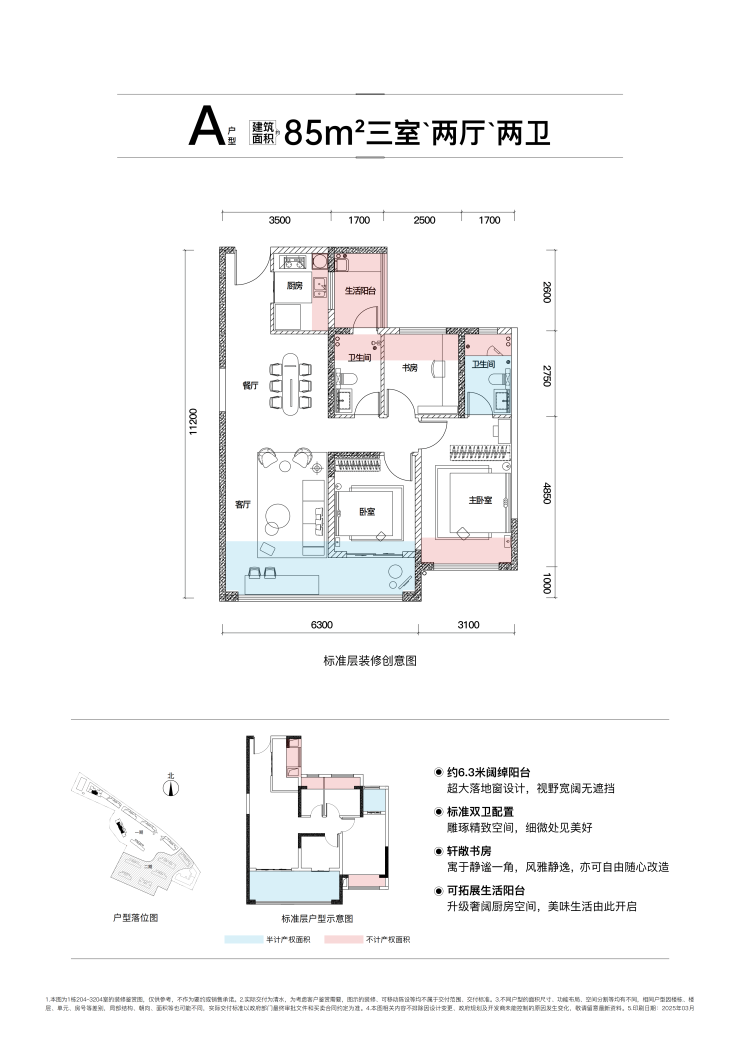 T6——85㎡ 全功能三房,使用率约105.38%