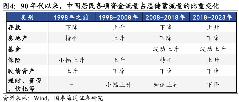 我们将1998年住房制度改革和2018年房地产下行看做两大转折点,将中国居民财富配置分为两次历史性大迁徙;2023年以来,我们认为,第三次历史性的“大迁徙”已经在发生。