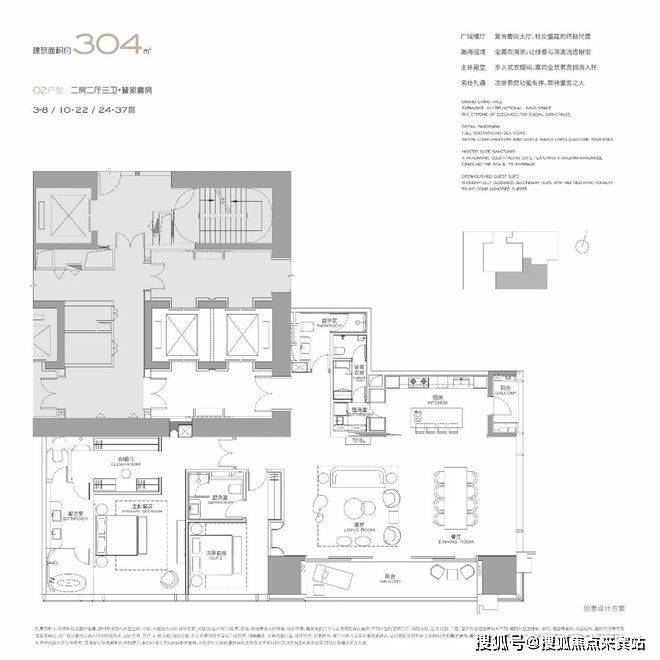 首批推出 303/327/400/570㎡大平层,均通燃气且配备超大阳台,部分户型采用 270° 环幕视野设计。