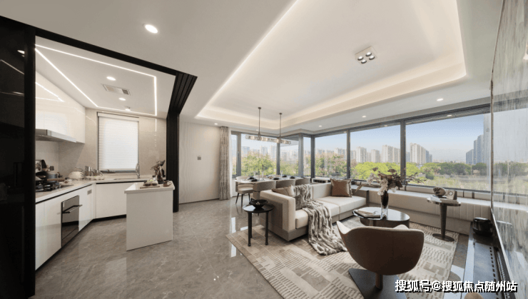 并且 270°寰幕边厅是整个户型的“点睛之笔”,整个客餐厅连接厨房阳台,形成 家庭的社交生活中心。 在阳光与风景的包围中, 这里不仅是孩子自由奔跑的天地,更是全家情感交流的核心场域,欢声笑语在开阔空间中自然生长。