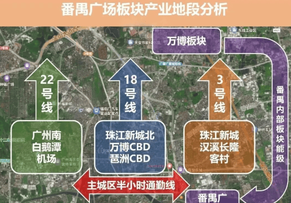 交通,是衡量居住价值的重要标尺。本项目距地铁3号线番禺广场站仅约800-900米,步行约10分钟即可轻松抵达。更令人瞩目的是,番禺广场站是广州少有的四线交汇枢纽——已开通的3号线、18号线、22号线在此交汇,未来还将接入规划中的17号线,形成强大的轨道交通网络。