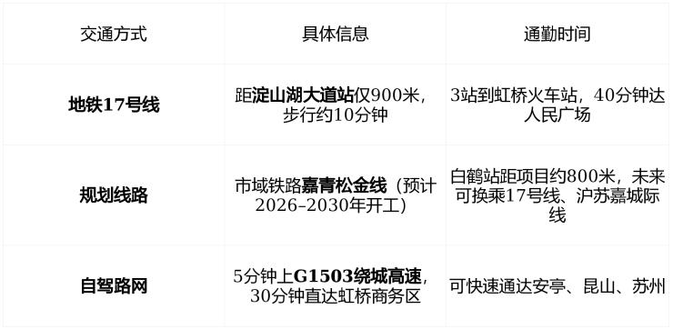 ✅ 真实体验 :在知乎实地探访中,有业主反馈“早高峰开车去虹桥,比从松江出发还快”。