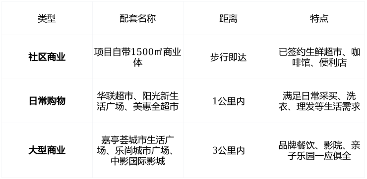 🛒 商业配套:1公里内买菜购物,3公里享大型商圈