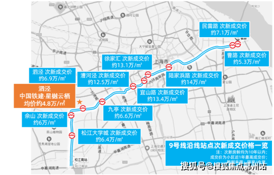 二手市场上,9号线周边次新价格呈明显梯度差,直线距离9号线泗泾站约700米,已然与同板块二手房形成近2万+/㎡的价差,用更低的价格,享受同样的配套!