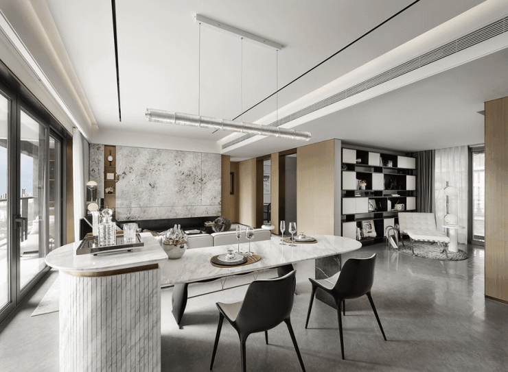 建筑外观采用现代美学与铝板立面设计,多飘窗和阳台打造出高窗墙比,在国兴大道上极具艺术感,丰富的肌理映射出都市 CBD 的繁华,宛如一件精美的艺术品 。社区入口融合酒店风格与艺术设计,通过栅格和雕塑元素,营造出庄重又优雅的落客区,地上地下双精装大堂,给予业主尊贵的归家体验 。