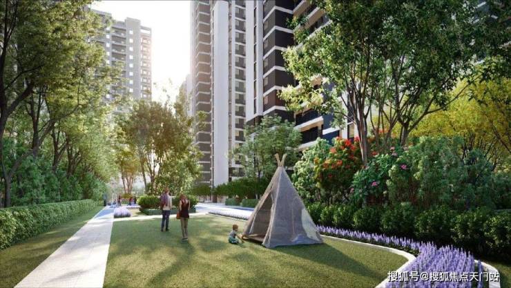 六园景观组团分布在不同楼栋之间,由高中低三层次景观树种搭配而成,让业主在不同时节归家,都有四季如春的感觉,与自然绿意相互触碰。
