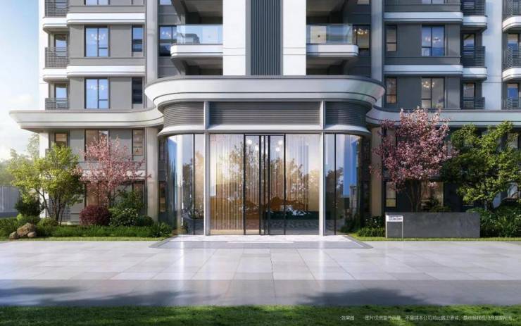南侧则是8栋2T2/17F小高层建筑,偏向东北-西南朝向。内部园林形成一条景观中轴,沿线布局了约63米宽主大门、酒店式入户大堂、下沉水院会所等设施。