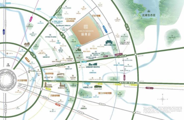 项目的交通优势可以用“三横三纵双TOD四地铁”概括。三横三纵城市道路网包括府青路、建设北路、成华大道和二环、中环、三环。