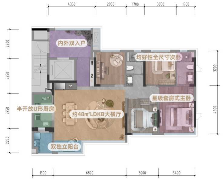 空间布局合理,设计奢华,为业主带来高品质居住享受。约117㎡满配级四房 【得房率约106%】