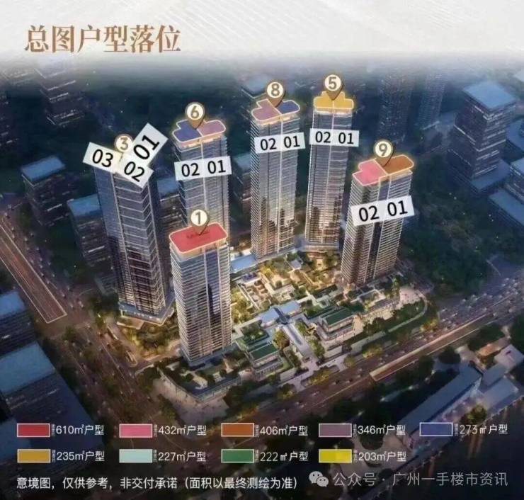 保利玥玺湾项目的户型分布图,项目总共由6栋35-50层高的超高层住宅组成,1号楼是整个项目最大的630㎡楼王整层户型,3号楼户型涵盖203-222-227㎡三种四房户型,6号楼和8号楼的户型则是相同的270㎡四房和347㎡五房产品,5号楼户型为237㎡四房产品,9号楼则是前排大面积411-436㎡的五房户型。