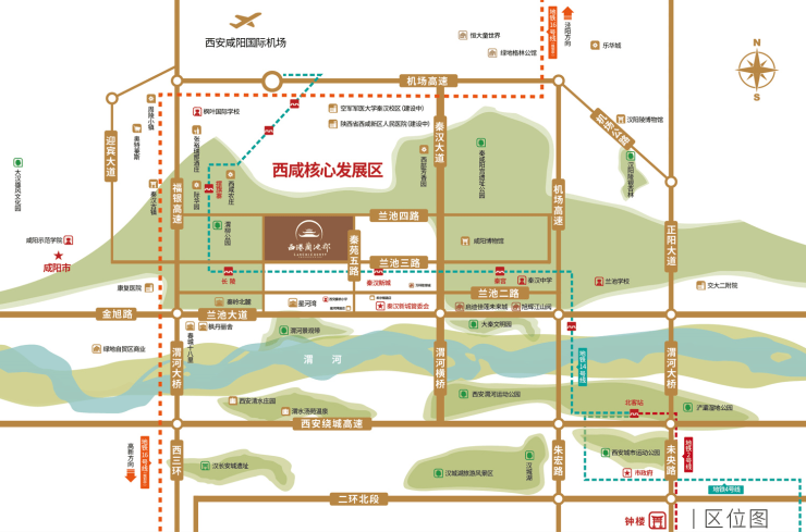 南侧星河湾酒店、希尔顿酒店(建设中),周边汇聚秦汉商务区、秦汉新城TOD项目、万科理想城大型商业综合体等商业资源,便捷日常生活休闲。