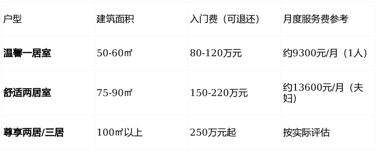 乐雅集采用”入门费+月度服务费“或”小额押金+月费“双轨收费模式,满足不同家庭需求