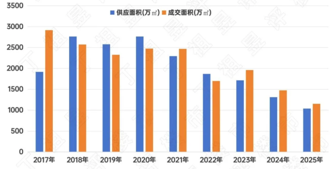 不过,成都商品住宅整体市场已连续三年供应面积小于成交面积。
