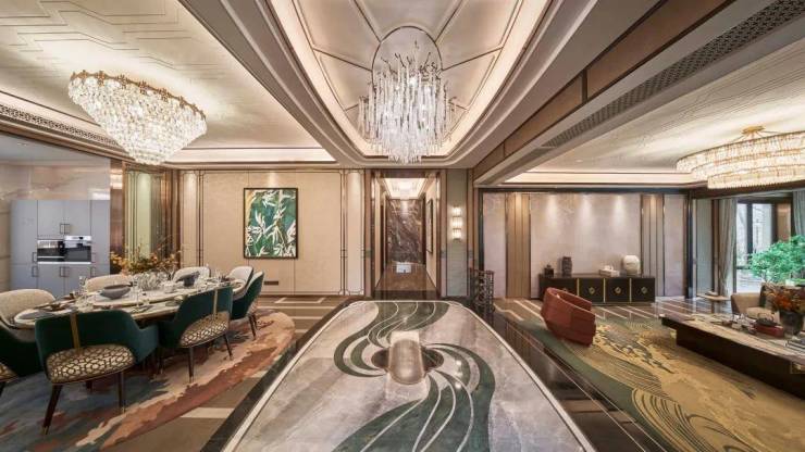 星中式传统美学布局,中轴贯连大境,南向最大约19.6m面宽,约3.5-3.6米层高设计,多厅恢弘建制,层峰荣耀气场,最大约80㎡星级主寝,全系规制,独享贵胄起居。