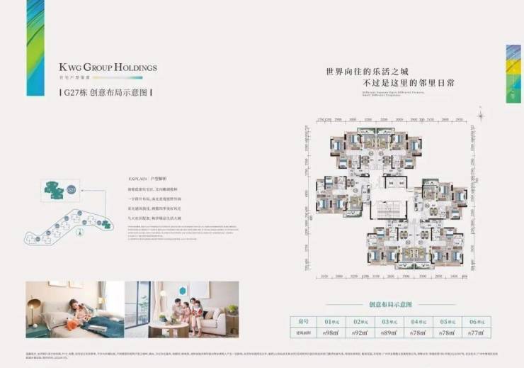 9、在售:G27栋,总高33层,两梯六户,面积77-98㎡带装修