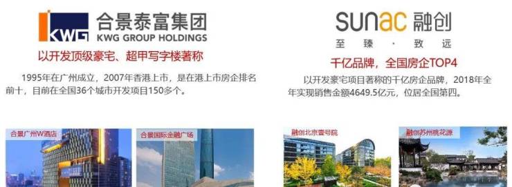 合景泰富集团,中国房地产开发企业综合发展10强,布局全国近40城,逾150个精品标杆项目。融创中国,中国房地产企业销售额Top4,高产品力引领行业,备受客户青睐。双香港上市房企联袂打造,成就约80万㎡全配大城,为城市美好人居赋能。