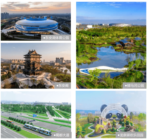 目前区域内已汇聚龙泉驿吾悦广场(已营业)、龙湖东安天街(2024年4月开业)、成都杉杉奥特莱斯(2024年9月开业)、华润万象商业(规划中)、深业泰富广场(建设中)等五大商业地标,构建起多元消费生态。
