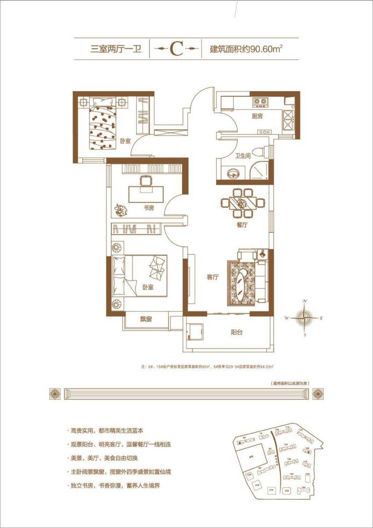 【标准层高】2.9米【容积率】5.98【绿化率】30%左右【车位比】1:1【得房率】19号楼71%左右18号楼74%左右