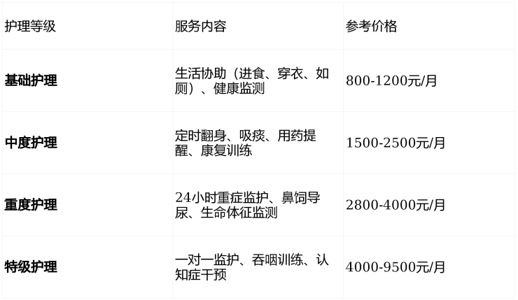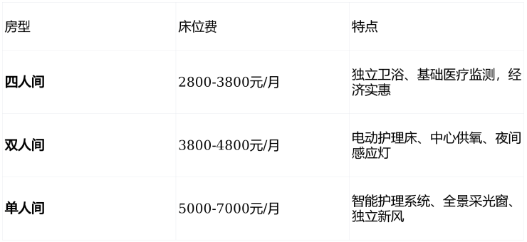 经济型:四人间+基础护理+标准餐 ≈3000-4000元/月