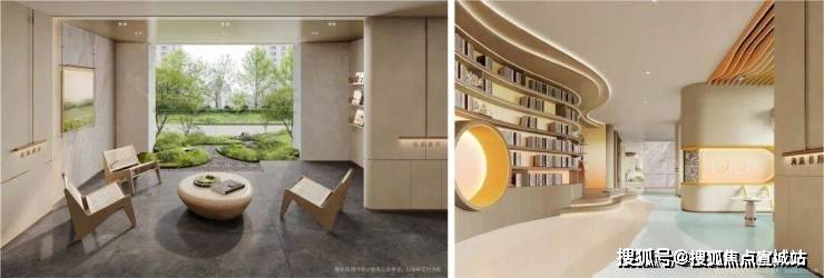结合建筑、空间、自然环境关系,室内室外联动,呈现一个景观会客、海浪书屋、儿童休闲等多重功能的泛会所架空层,为全龄社交营造一个“有温度、有态度”的邻里空间。