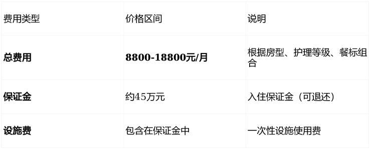基础费用:房间费+一级护理+基础餐费≈8800-11600元/月
