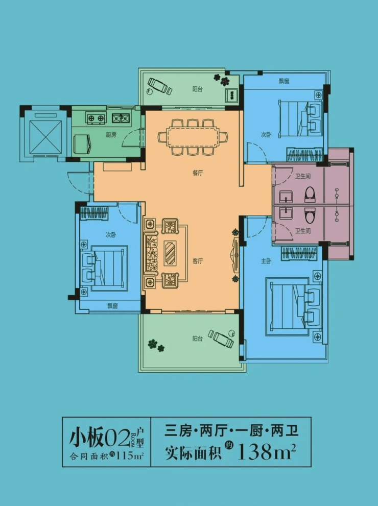 建筑面积115平米,实得138平米