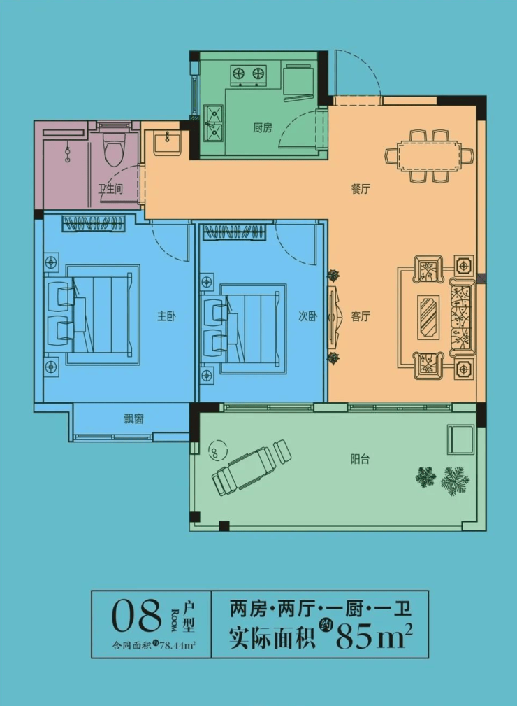 建筑面积:78平米,实得面积85平米