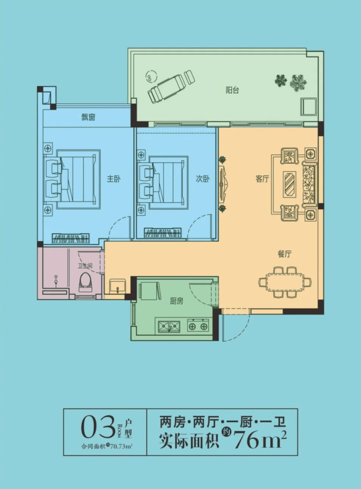 建筑面积:70平米,实得面积76平米