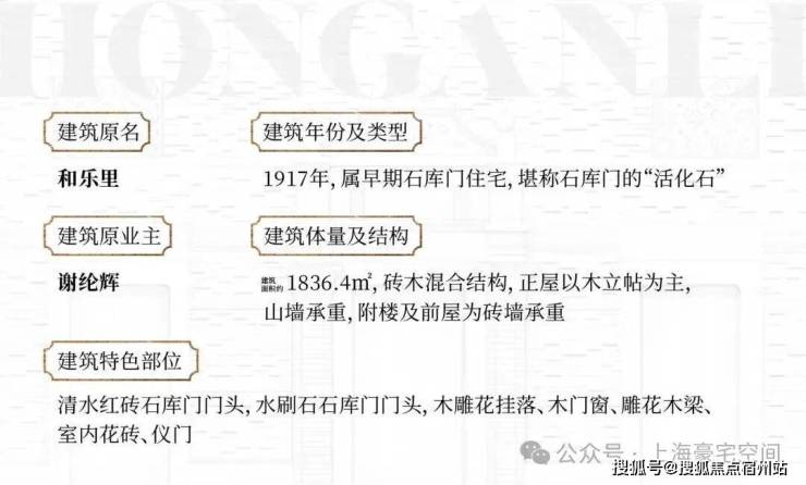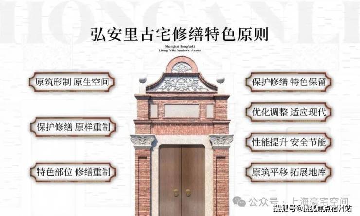 弘安里限量保留和乐里南二弄,原“谢庸行堂”的3席历史老宅,采用保护修缮的方式进行更新,整幢建筑完整保留,并比照历史图纸,对现状建筑外立面进行细致的修补、恢复,对重要的构件进行维护,修旧如旧,恢复历史沿街风貌。