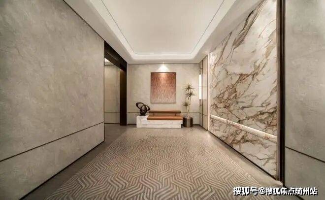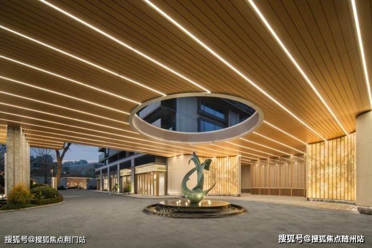 它的大门用上了贝金米黄和孔雀开屏奢石,搭配超尺的环岛落客区、对立两侧的铁冬青,一眼就贵气逼人。