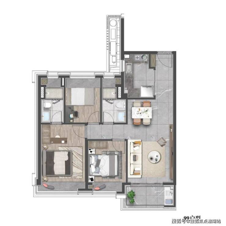 三进:尊享水苑-入户门庭仪式水景;下沉会所-私享品质生活;社区会客厅(约20m²)-度假式摩登私享泛会所。