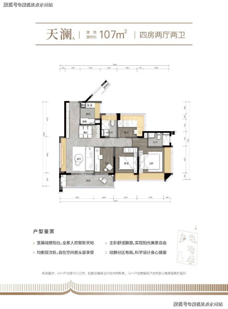 改善优选:107㎡四房的全周期居住解决方案,作为项目的改善型产品,107㎡四房两厅两卫户型瞄准了光明片区成长型家庭的需求,通过合理布局和尺度把控,实现了“一步到位”的居住梦想。该户型采用横厅南北通透格局,6米的客餐厅开间配合6.7米长的南向阳台,营造出媲美更大户型的空间气场,重新定义了区域内四房产品的标准。